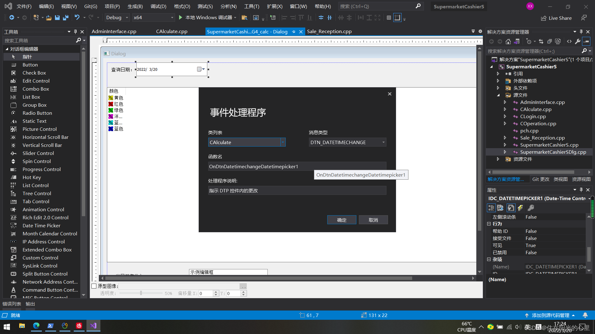 void CAlculate::OnDtnDatetimechangeDatetimepicker1(NMHDR* pNMHDR, LRESULT* pResult) //在控件的时间发生改变时响应消息函数