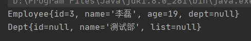 通过结果可以看到 , 当我们第一次输出这个 employee 对象时, 部门是没有被查询的 , 而当我们需要使用到部门的信息时, 才会去触发这个查询?