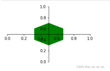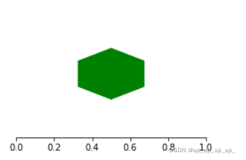 polygon = mpathes.RegularPolygon((0.5, 0.5)//中心点, 6//多边形顶点数量, 0.2//半径, color = 'g')