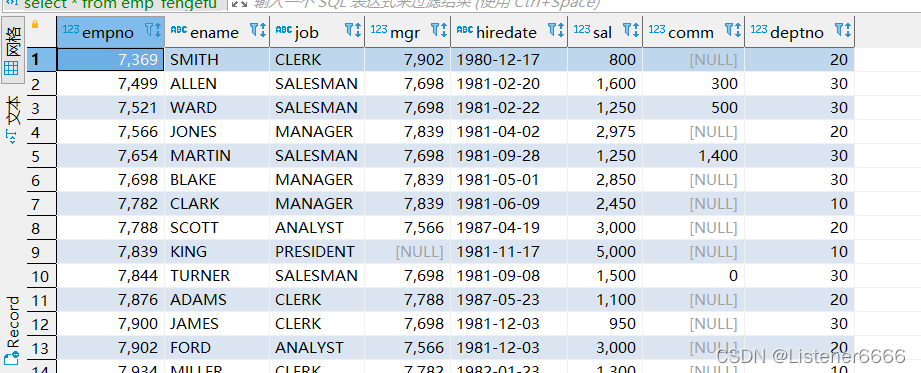 CREATE TABLE emp_fengefu