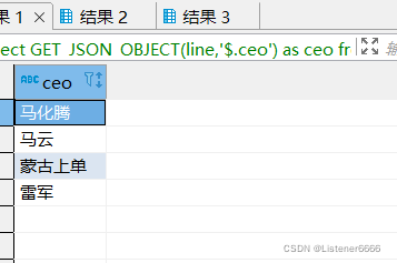 select GET_JSON_OBJECT(line,'$.ceo') as ceo