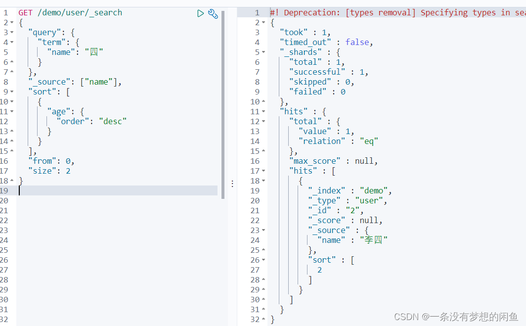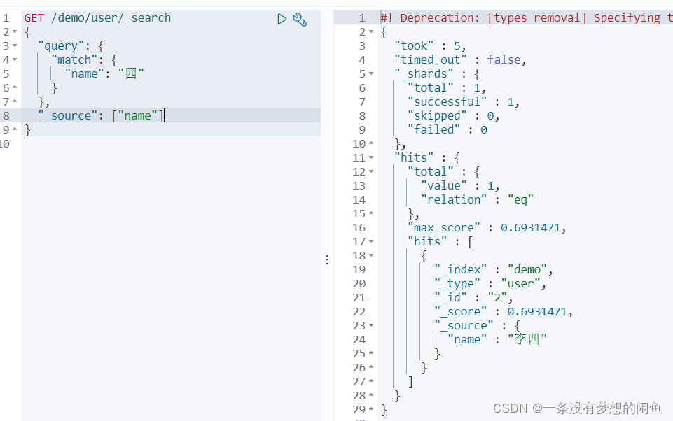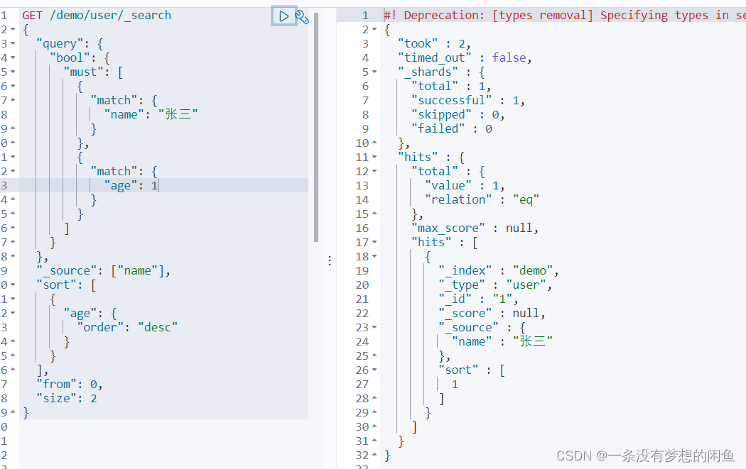 //{"_index":"demo_index","_type":"_doc","_id":"1","_version":1,"_seq_no":0,"_primary_term":1,"found":true,"_source":{"age":1,"name":"张三"}}
