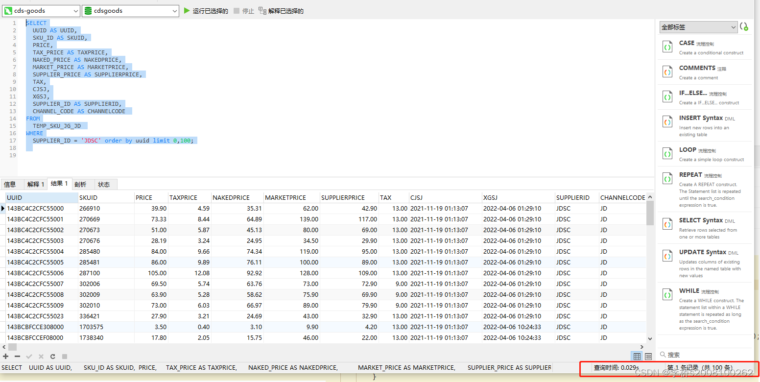 SUPPLIER_ID = 'JDSC' order by uuid limit 0,100;