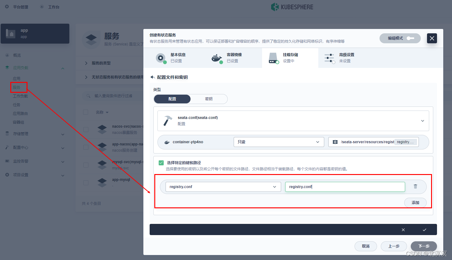 (六)从零开始搭建k8s集群——使用KubeSphere管理平台创建Mysql数据库容器服务_北溟溟的博客-CSDN博客使用KubeSphere管理平台创建Mysql数据库容器服务 https://blog.csdn.net/yprufeng/article/details/123652992