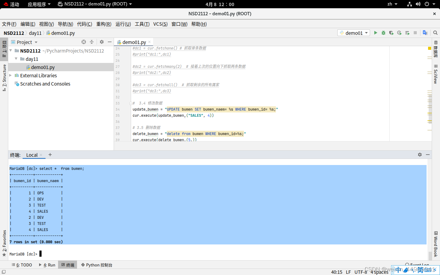 MariaDB [tedu1]> UPDATE bumen SET bumen_name="TEST" WHERE bumen_id=1;
