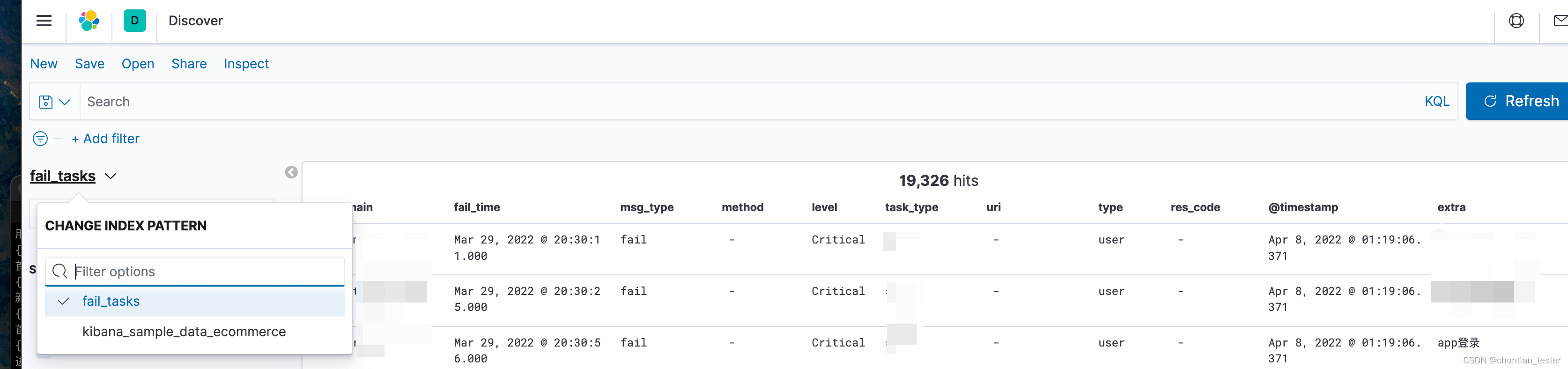 index => "es中的索引名(先通过curl -X PUT命令创建索引名)"