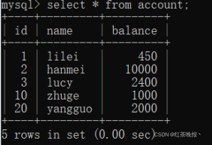 假设account表里数据如下: