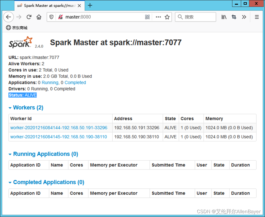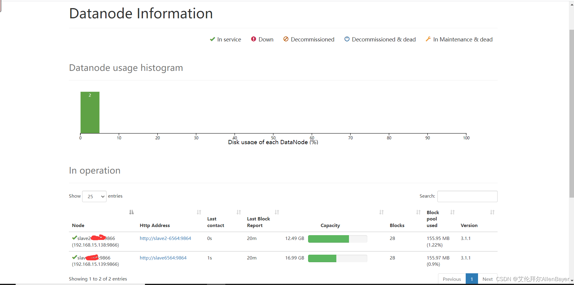 主机为master(在网页上不显示),从机1为slave1,从机2为slave2,这是在配置hadoop时为三台机器配置的名字。