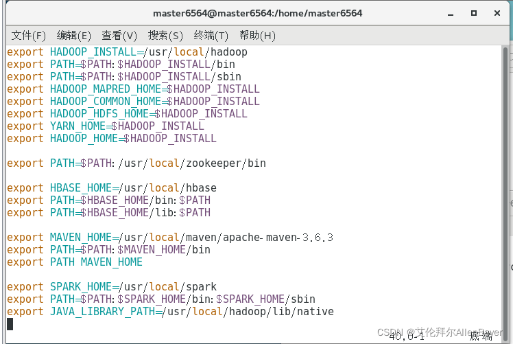 [root@master spark]# cp ./conf/spark-env.sh.template ./conf/spark-env.sh