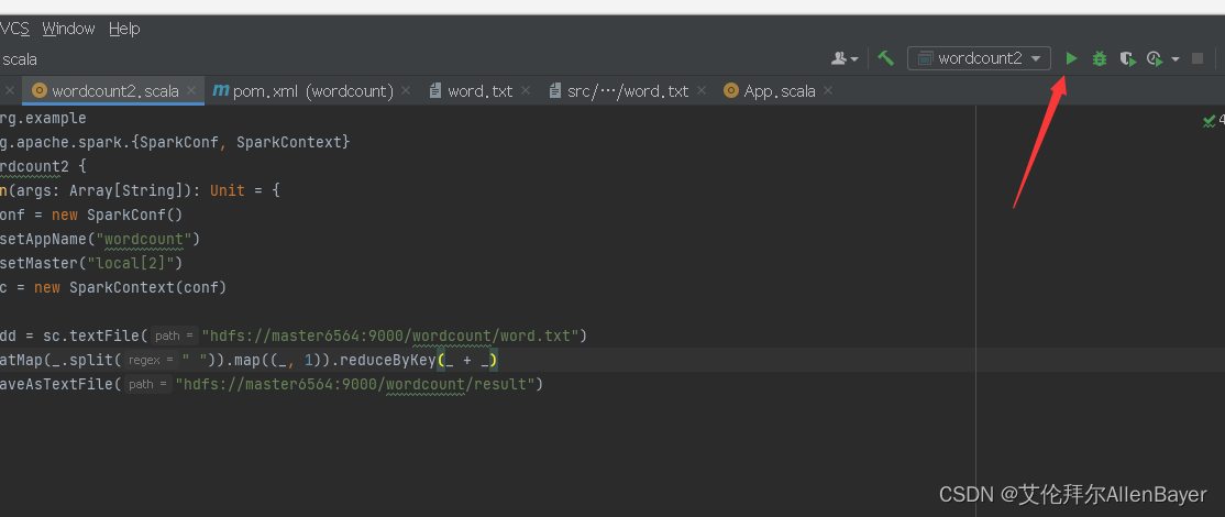 val rdd = sc.textFile("hdfs://master6564:9000/wordcount/word.txt")