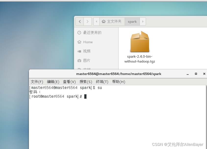 将master上的spark传输到从机上,先在master终端上运行以下命令