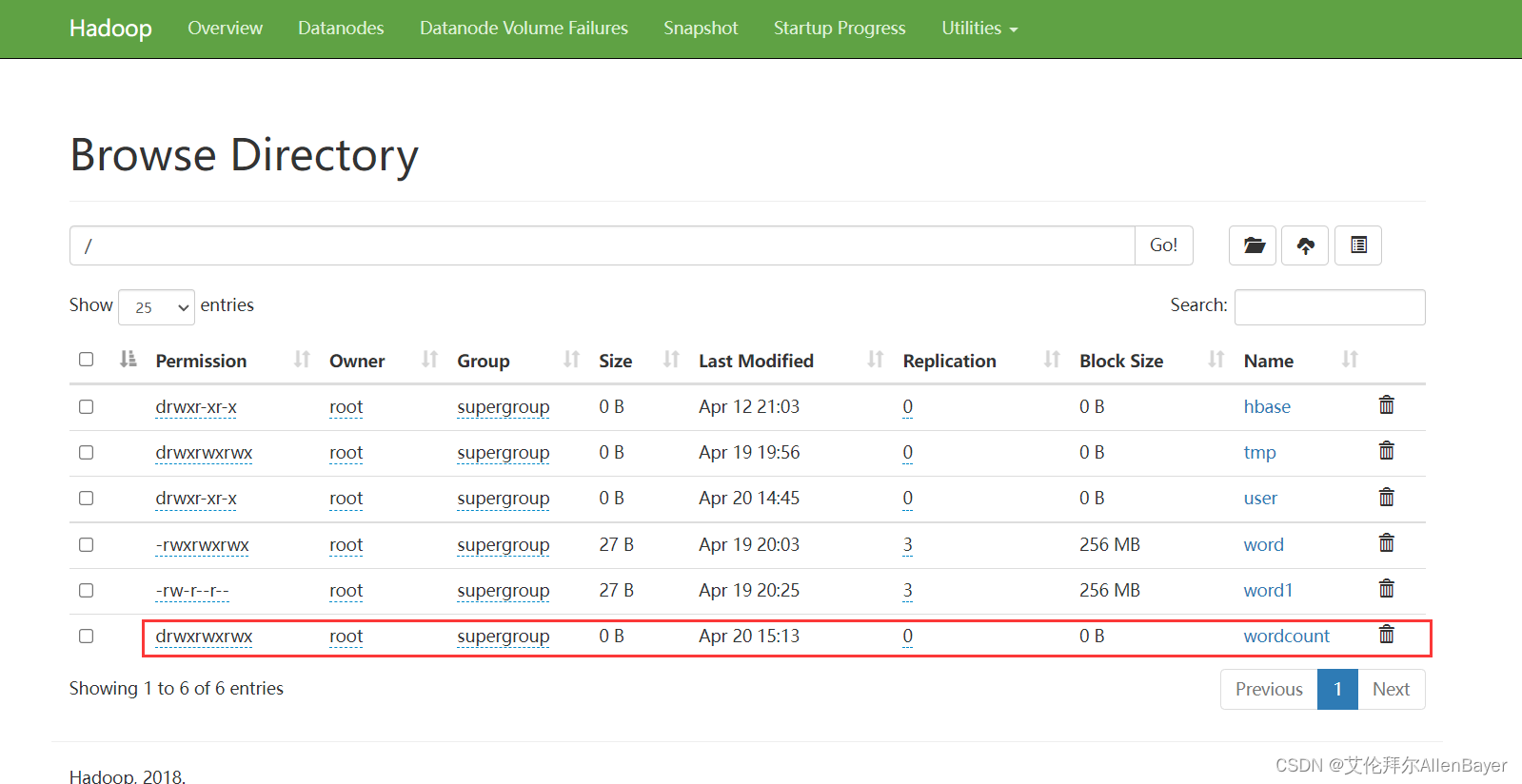 [root@master6564 ~]# hadoop fs -chmod -R 777 /wordcount