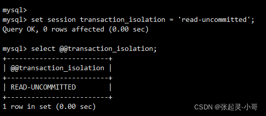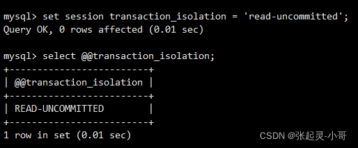 但是此时隔离级别是读已提交,还是如此嘛?(如下可以看到此时已经不会读取到另一个事务未提交的数据了,也即在读已提交的情况下,解决了脏读问题)