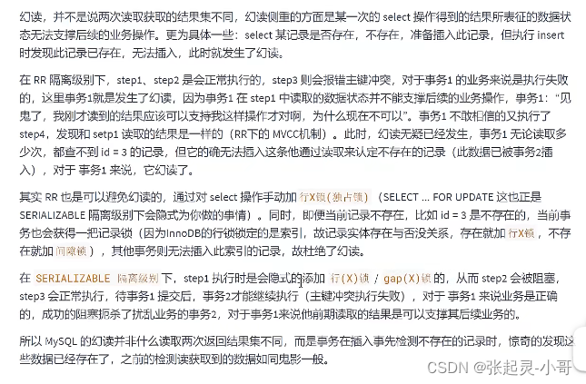 再读该数据,读到的还是原来的内容。可以避免脏读、不可重复读,但幻读问题仍然存在。这是MySQL