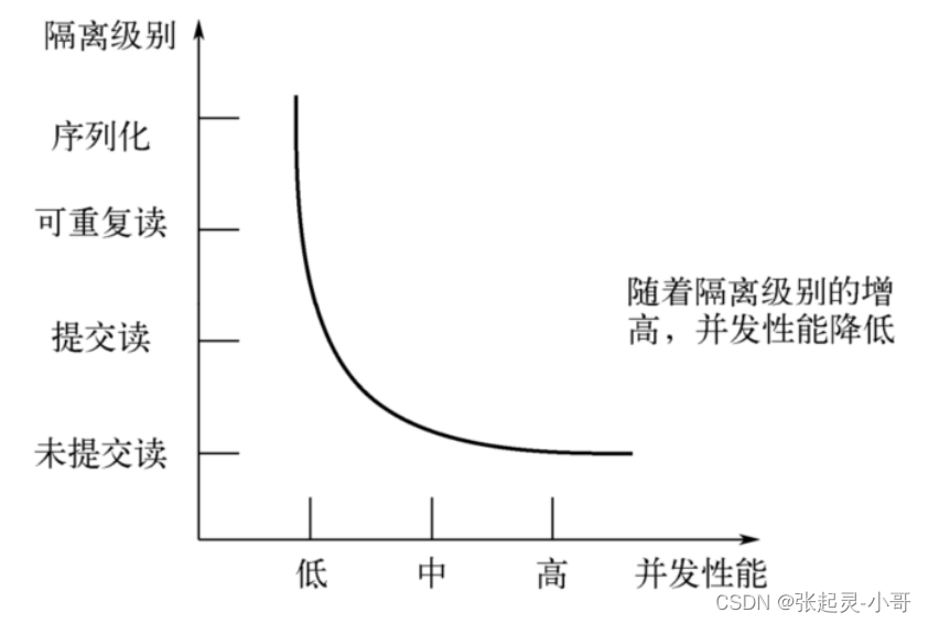 不同的隔离级别有不同的现象,并有不同的锁和并发机制,隔离级别越高,数据库的并发性能就越差,