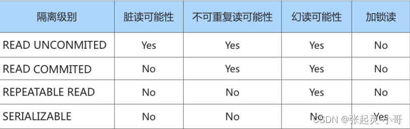 中规定,针对不同的隔离级别,并发事务可以发生不同严重程度的问题,具体情况如下: