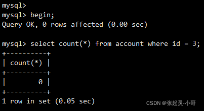 可以看到,id为3的记录为0(也即没有这条记录),因为第一个连接中的事务还未提交,这里自然读取不到。