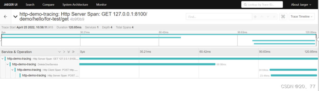 ?????????多个jaeger-agent与多个Collector,jaeger-agent部署在具体业务的容器里面,Collector作为集群部署在服务端统一收集jaeger-agent上报的信息,然后Collector把数据提交给es集群,然后在需要展示的地方部署jaeger-query查询器,展示数据 ????????在云主机上部署es集群和多个Collector容器组成集群,然后win10部署具体应用,本地虚拟机部署jaeger-agent和jaeger-query查询器
