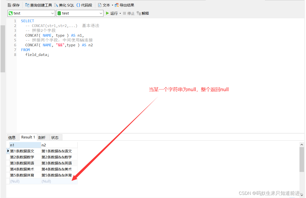 ?注意:?如果任何表达式是NULL值,则返回NULL。