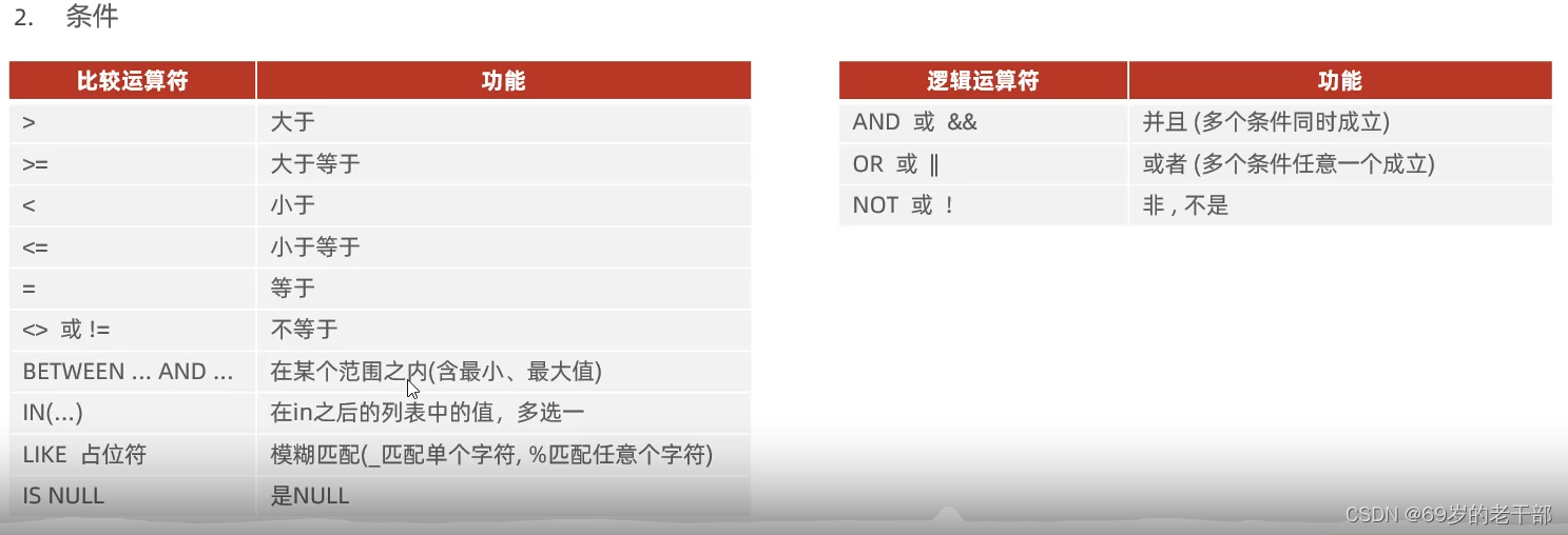 2.条件(条件查询,条件列表里可以有多个条件)如下: