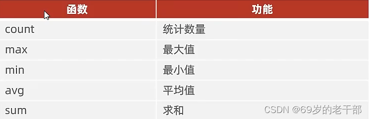 聚合函数就是讲一列数据作为一个整体,进行纵向计算的函数。
