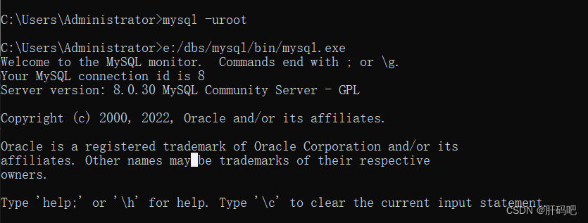本机链接:mysql -hlocalhost -P3306 -uroot -proot?