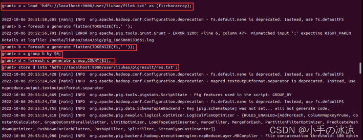 ? 1.4 pig启动启动Hadoop集群(略) 启动pig:./bin/pig