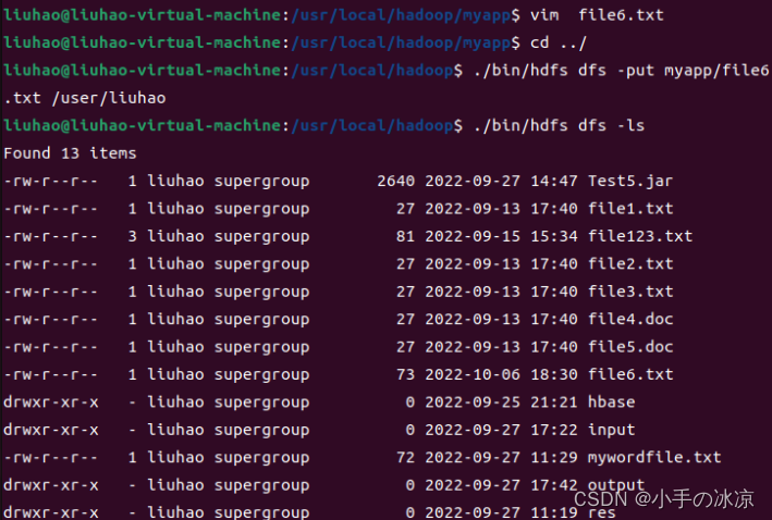 创建文件file6.txt,并上传到Hadoop集群