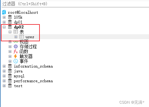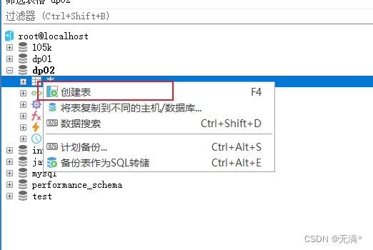 这时候我们的MySQL就连接成功了。 现在我们在MySQL中添加一个数据库。  我们在MySQL中添加一个名dp01的数据库。