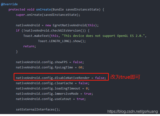 disableNativeRender (是否禁用原生渲染加速) 这里设定为true即可。