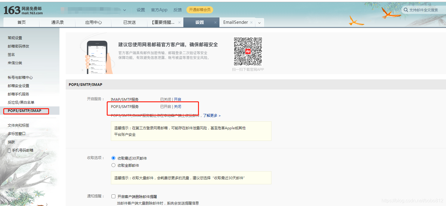 1、首先需要在163邮箱中开通POP3/SMTP服务并获取授权码,