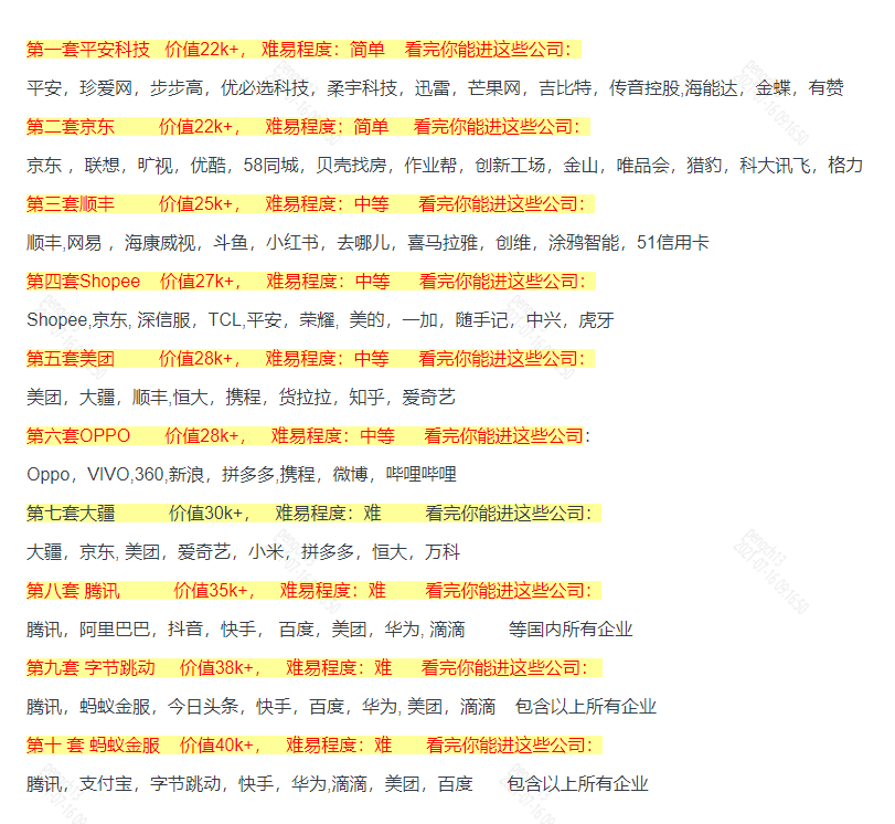 本系列一共10套面试真题,适合快速找工作的人准备,薪资和公司分别如下。