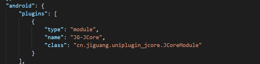 配置插件信息 在dcloud_uniplugins.json文件填写插件信息,插件信息在HBuilderX项目nativeplugins/JG-JCore/package.json、nativeplugins/JG-JPush/package.json中查看   -