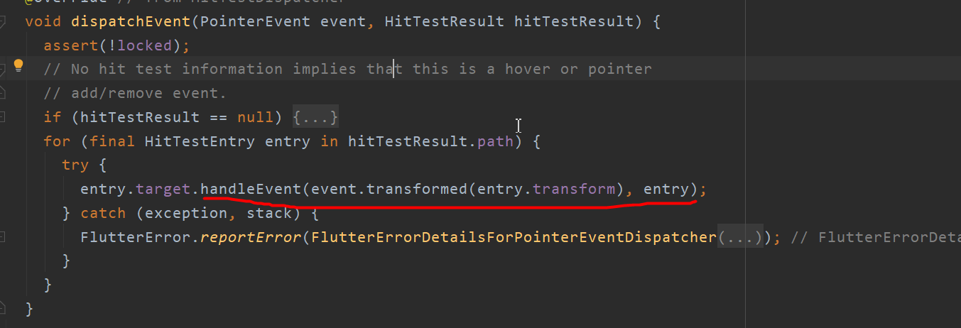 void dispatchEvent(PointerEvent event, HitTestResult hitTestResult) {
