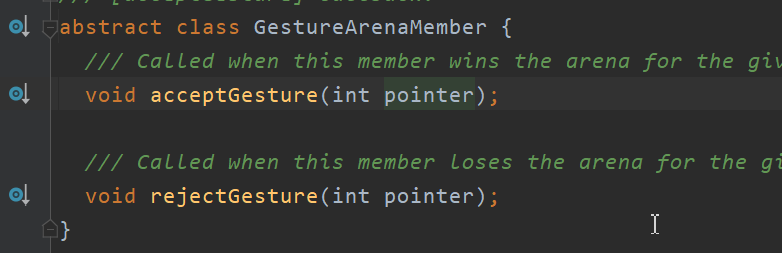 _resolveInFavorOf 主要是遍历所有的GestureArenaMember(可以看成是手势识别器的代理,因为识别器实现了这个接口)通知其余的手势识别器被拒绝了也就是竞技失败,最终的竞技场的获胜者是member 。