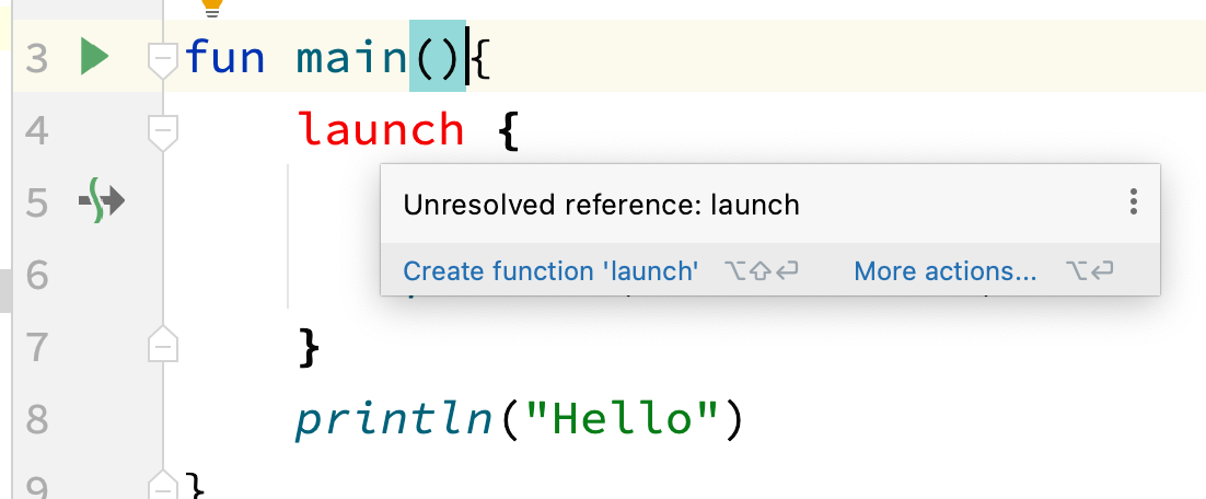 launch就会提示找不到对应方法了。实际上,查看lauch函数的源码可知,这是一个CoroutineScope对象的扩展函数。而runBlocking方法在代码块内提供了这样一个CoroutineScope对象,launch的实际写法是this.launch{},这样就不难理解了。