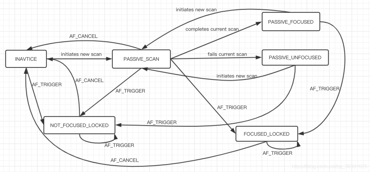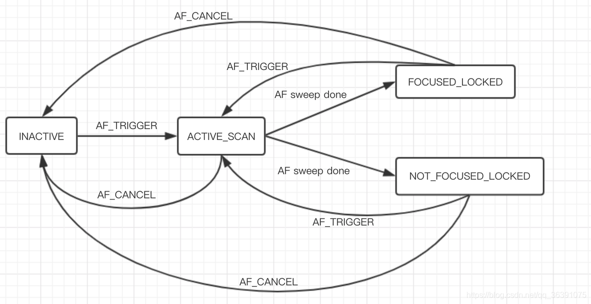 这两个模式下:INACTIVE ,ACTIVE_SCAN ,FOCUSED_LOCKED,NOT_FOCUSED_LOCKED,这四个状态中切换当到达FOCUSED_LOCKED状态时表示对焦成功, 这个时候图像最清晰。