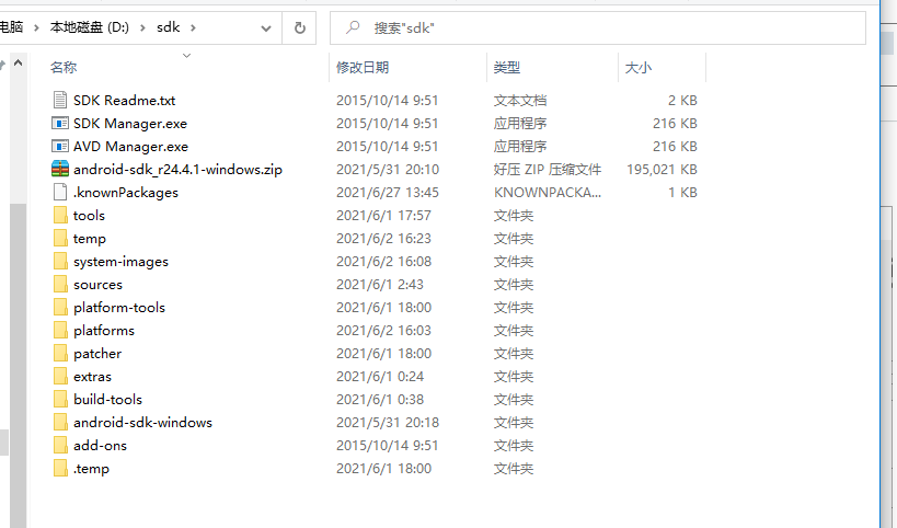 出现以上信息即配置成功 5、SDK下载Android依赖打开解压后的android-sdk-windows文件夹 双击SDK Manager