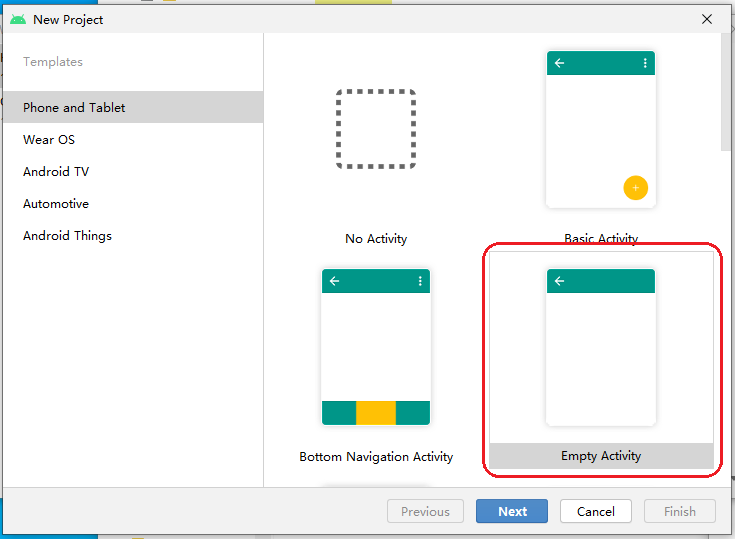 2、选择Empty Activity