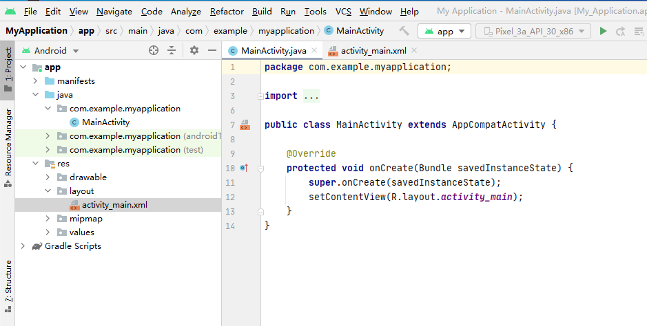 Android Studio生成的空项目代码如下: