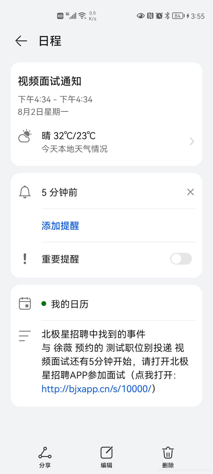 日历事件详情: