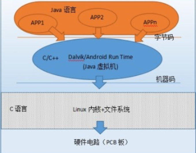 ?我们再来看一下操作系统的定义:操作系统(operating system,简称OS)是管理计算机硬件与软件资源的计算机程序。操作系统需要处理如管理与配置内存、决定系统资源供需的优先次序、控制输入设备与输出设备、操作网络与管理文件系统等基本事务。操作系统也提供一个让用户与系统交互的操作界面。 ? ? ? ? 就是说虽然内核已经可以实现存储管理、CPU和进程管理、文件系统、设备管理和驱动、网络通信,以及系统的初始化(引导)、系统调用等。 ????????但是对于普通用户和开发软件者来说还是太复杂了。所以需要操作系统来封装内核调用和实现用户交互界面。 说完内核与系统,让我们回归到android系统本身。android系统既然是linux内核,那么它与linux系统有什么不一样呢? ????????1.Android除了Linux内核具备的常用核心驱动外,还增加了自己专有的内核驱动程序,如显示驱动、蓝牙驱动、相机驱动、内存卡驱动、Binder IPC驱动等。 ????????2.另外,Android系统为了保护硬件厂商的知识产权,增加了HAL层,可将驱动具体的实现部分抽取发到HAL中去实现,从而规避了硬件驱动开源的风险,所以android的驱动程序是分为两部分,一部分写入内核中,一部分写入HAL层中。 ????????3.而且,Linux与android还有应用层软件的差异 (1)Android应用程序访问Android内核驱动程序的方式: ????????APP—>JNI—>Android内核驱动程序 (JNI可以直接访问内核) ????????APP(C程序)—> Linux内核驱动程序 |