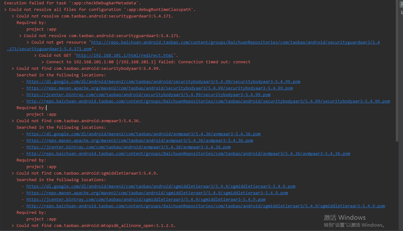 集成Android版本的阿里百川,下载安全图片,引入依赖项目,配置混淆规则,搞完这一套,然后Gradle....