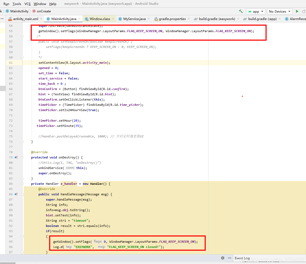 二、使用 addFlags 和 clearFlags 添加禁止休眠和解除禁止休眠功能。