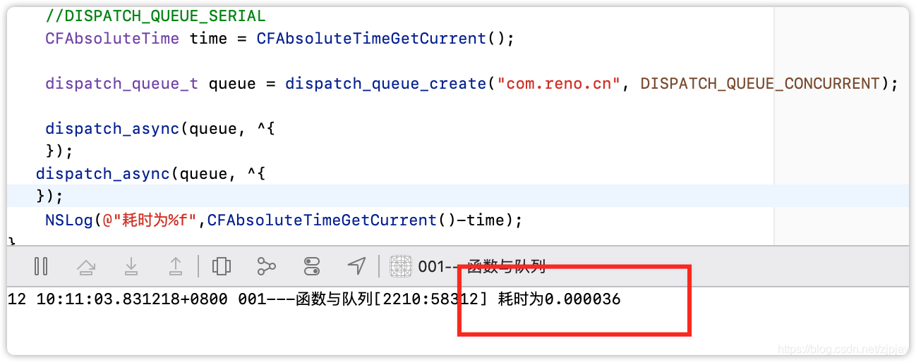 我们只是创建了一个并发队列,就耗时为0.000010秒