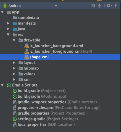 一、实现步骤: 1、在drawable文件夹下新建shape.xml文件