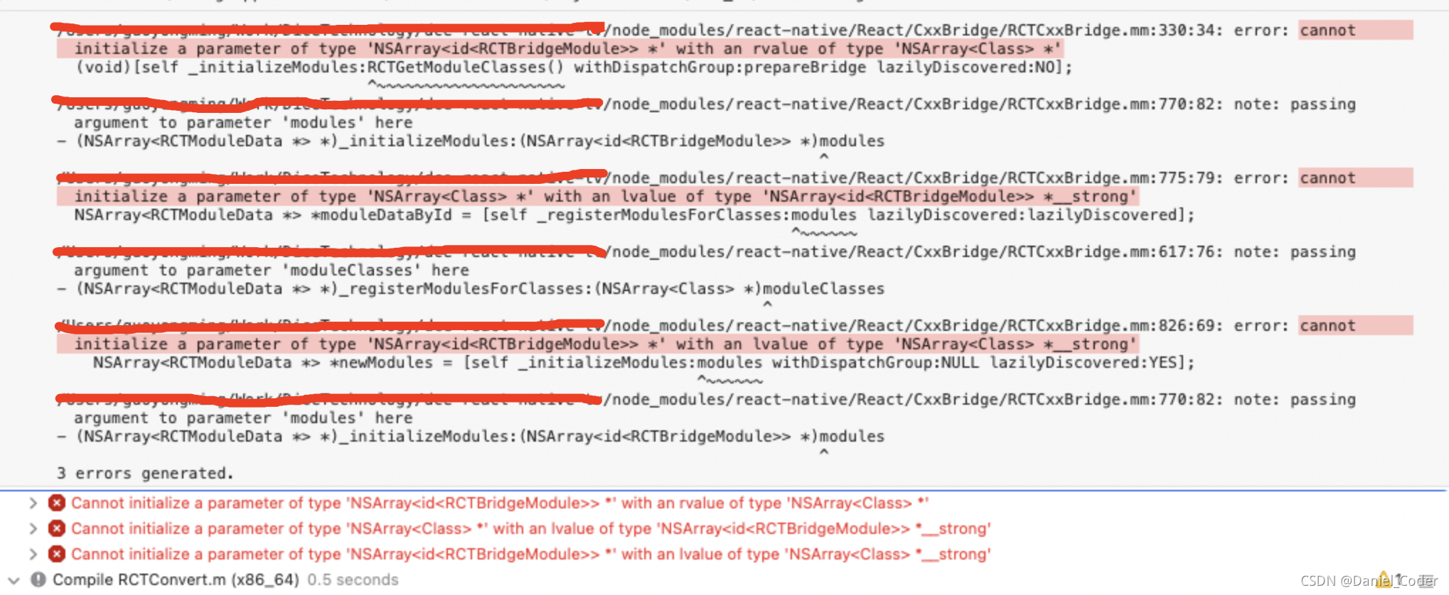 /Users/xxxxx/node_modules/react-native/React/CxxBridge/RCTCxxBridge.mm:775:79: Cannot initialize a parameter of type 'NSArray<Class> *' with an lvalue of type 'NSArray<id<RCTBridgeModule>> *__strong'