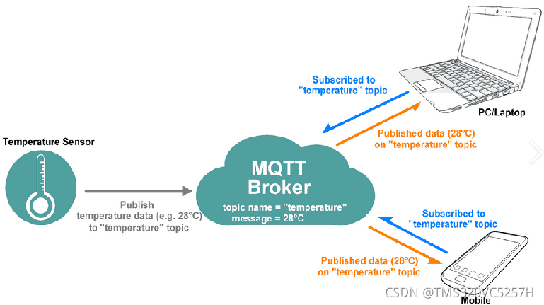物联网通信的基本结构如下图所示,但是需要提醒的是:制作物联网APP并不是基于MQTT的,而是基于http的,原因也会在视频课中提到。