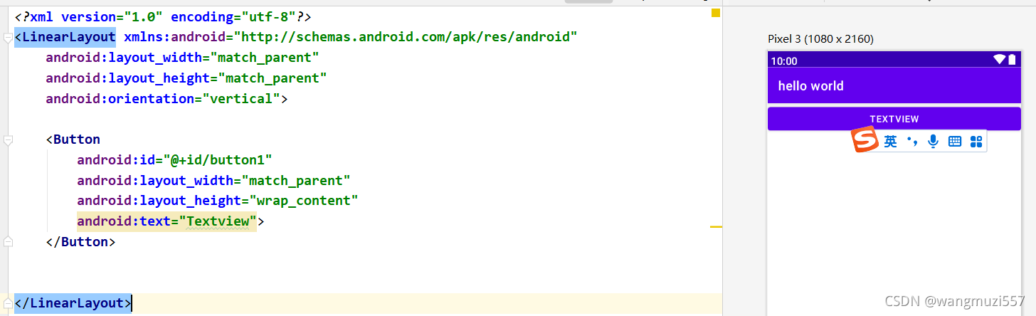 android:orientation 设置元素的位置 水平or 垂直 只有线性布局才有