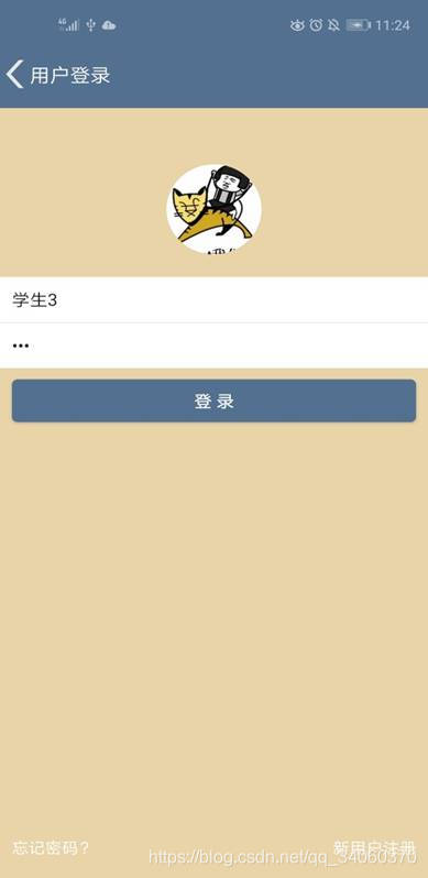 1.用户打开程序显示“登录界面”,登录界面会显示上一个登录的用户头像,并且账号和密码已输好,下面一行左右两侧分别是忘记密码?和用户注册。